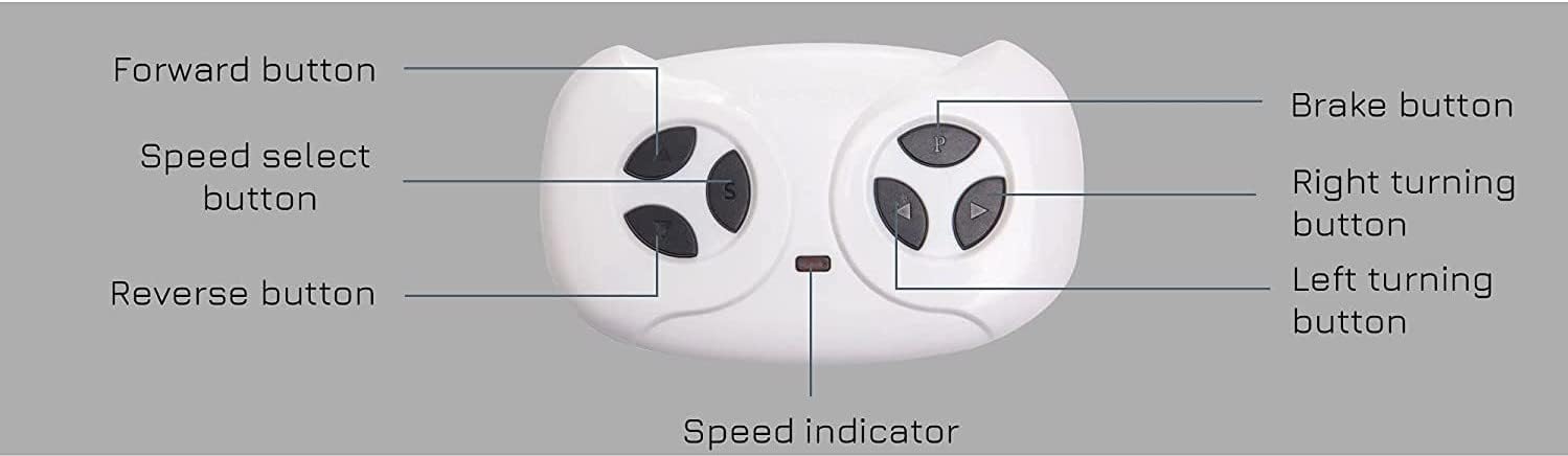 Puede ser manejado por el niño desde el asiento o por los padres con control remoto para mayor seguridad. Su diseño cuenta con llantas anchas de 10", suspensión en las cuatro ruedas y arranque suave, garantizando paseos cómodos y estables.